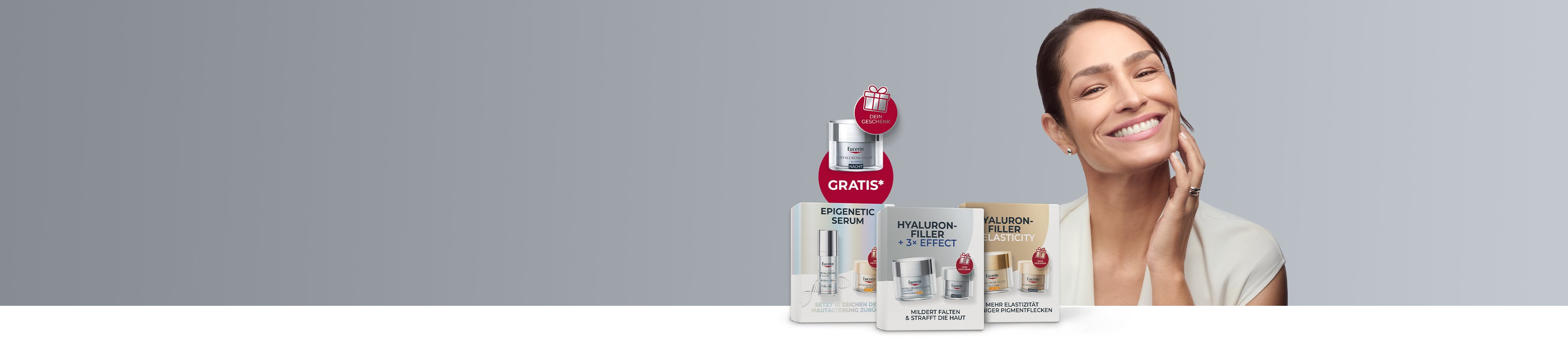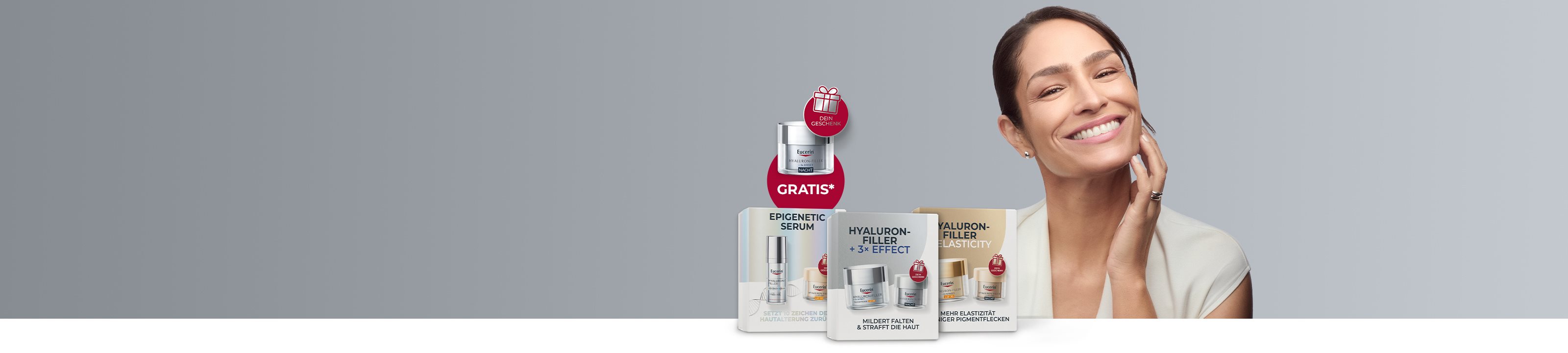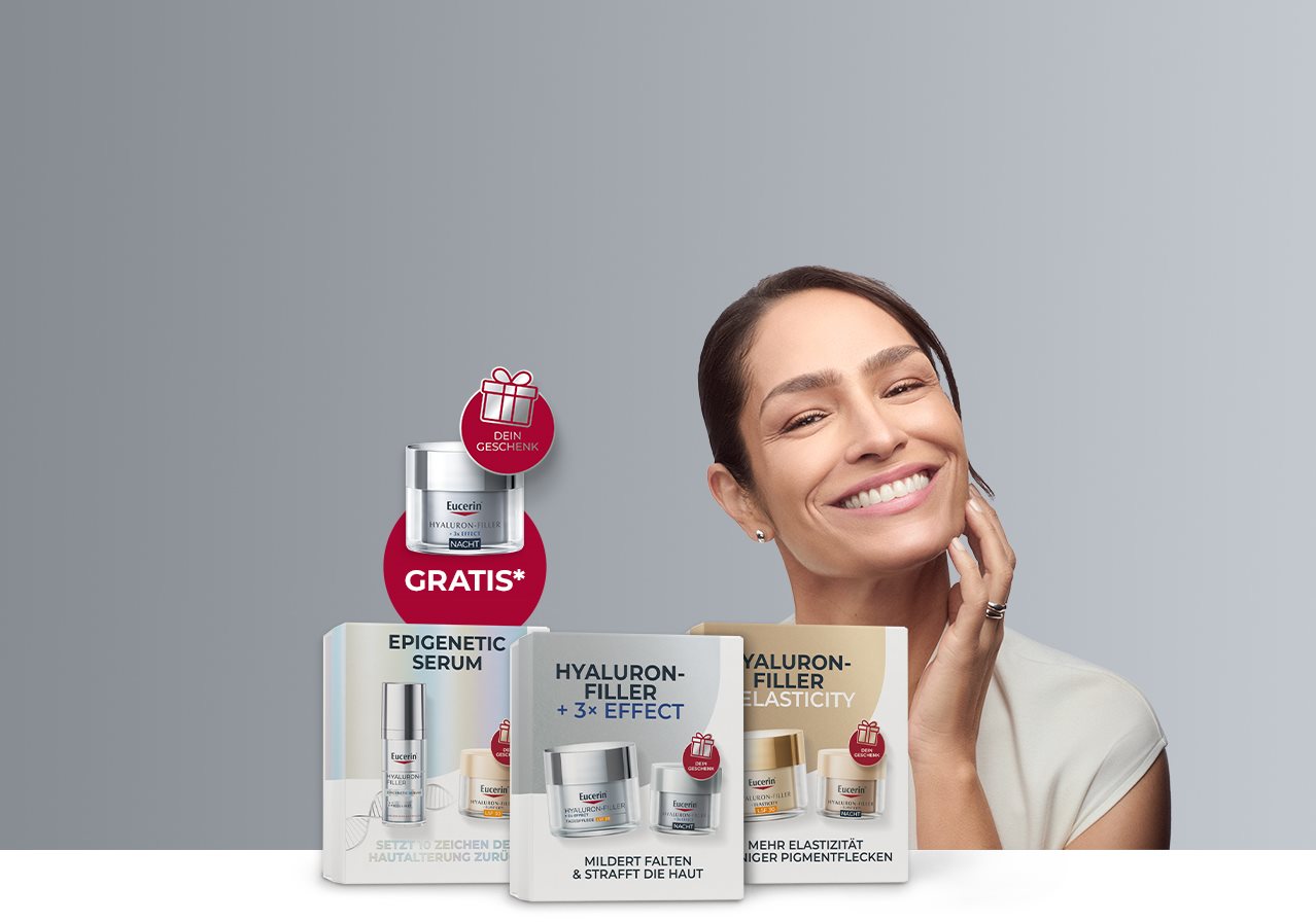 *Beim Kauf von Eucerin® Körperpflegeproduktes inkl. Reinigung. Ausgenommen sind Hand-, Lippen-, und Fußpflegeprodukte. Nur ein Gratisprodukt pro Kaufakt und nur solange der Vorrat reicht.