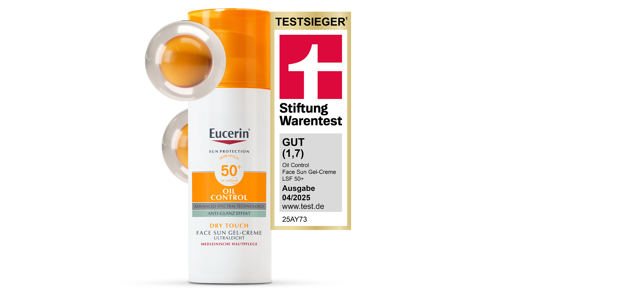 Erlebe hochwirksamen Sonnenschutz, der deine Haut langanhaltend mattiert und gleichzeitig ultraleicht auf der Haut liegt. Die Eucerin Sun Oil Control Gel-Creme LSF 50+ kombiniert modernste Oil Control– und AOX Shield Technology für zuverlässigen Schutz ohne Glanz – jeden Tag.