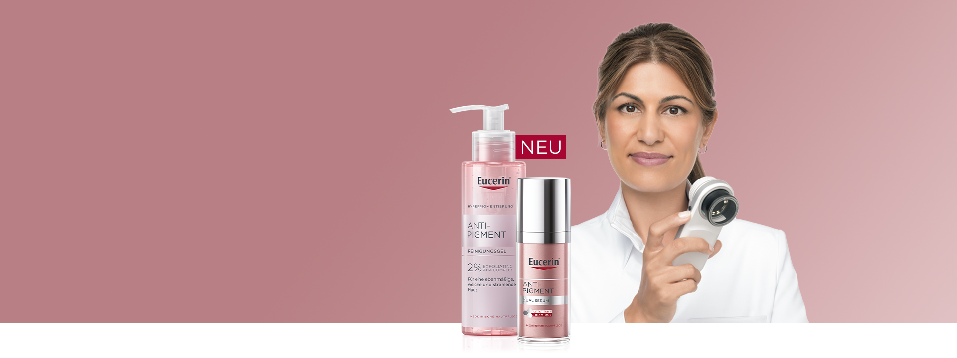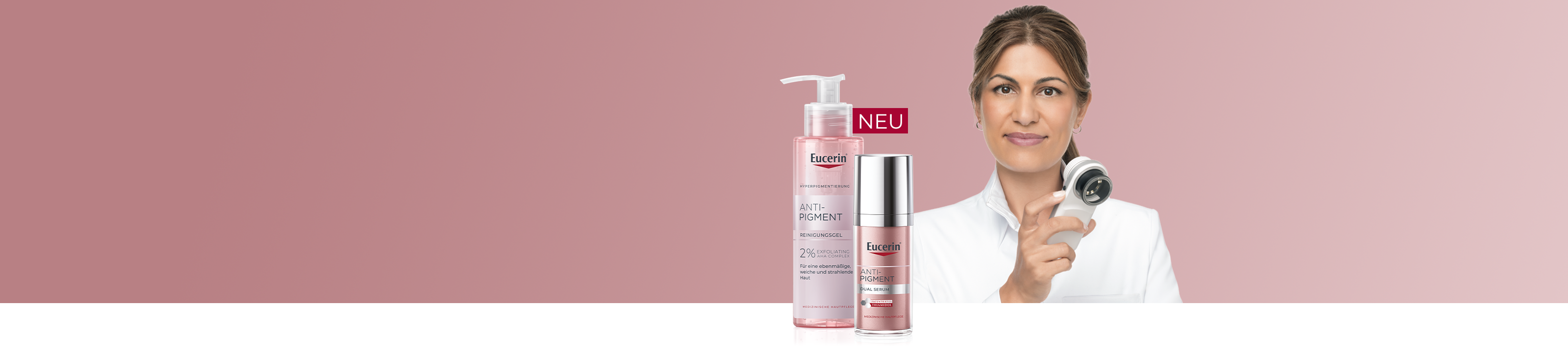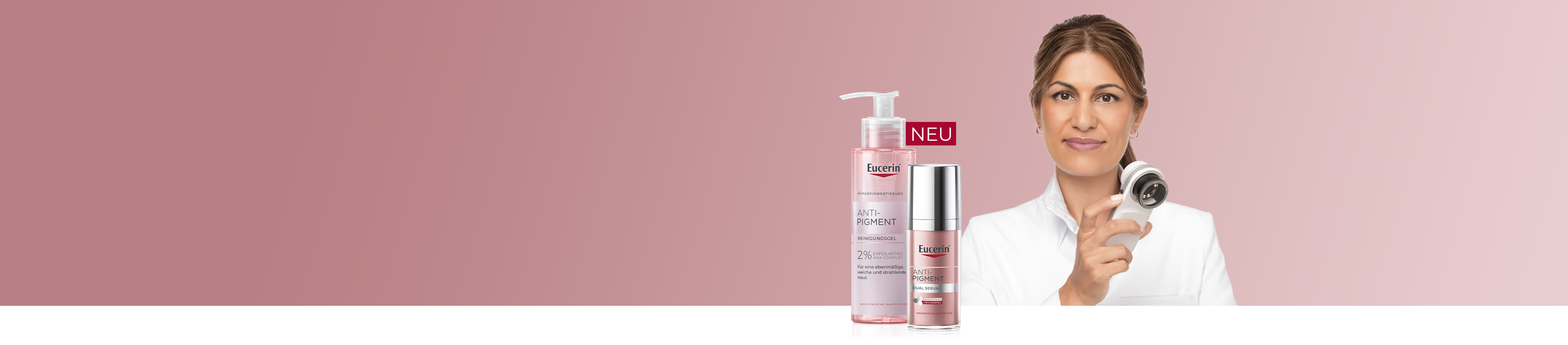 Sonnenexposition, hormonelle Einflüsse oder Hautalterung können Hyperpigmentierung (wie Pigmentflecken oder Altersflecken) zur Folge haben, welche die Haut weniger ebenmäßig erscheinen lassen. Die Eucerin Anti-Pigment Pflegeserie wurde speziell dafür entwickelt, Hyperpigmentierungen im Gesicht zu mildern und einen gleichmäßigeren, strahlenden Hautton zu verleihen.