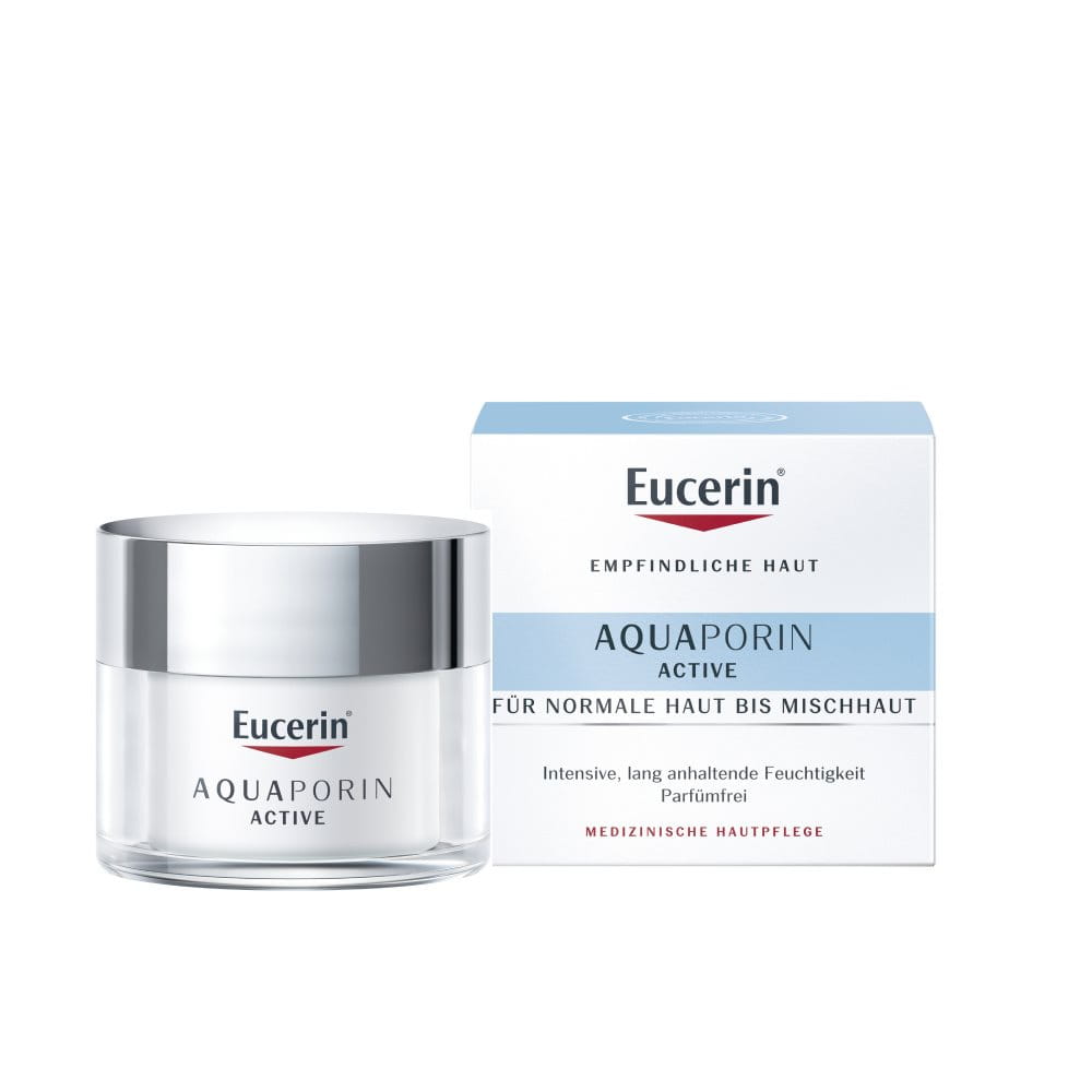 Eucerin AquaPorin Active ist jetzt unparfümiert und parabenfrei und versorgt auch empfindliche Haut intensiv mit Feuchtigkeit. Die Formel mit naturidentischem Gluco-Glycerol spendet selbst in tieferen epidermalen Hautschichten intensive, langanhaltende Feuchtigkeit. Da die Pflege schnell von der Haut aufgenommen wird, ist sie ideal als Make-up-Grundlage geeignet.