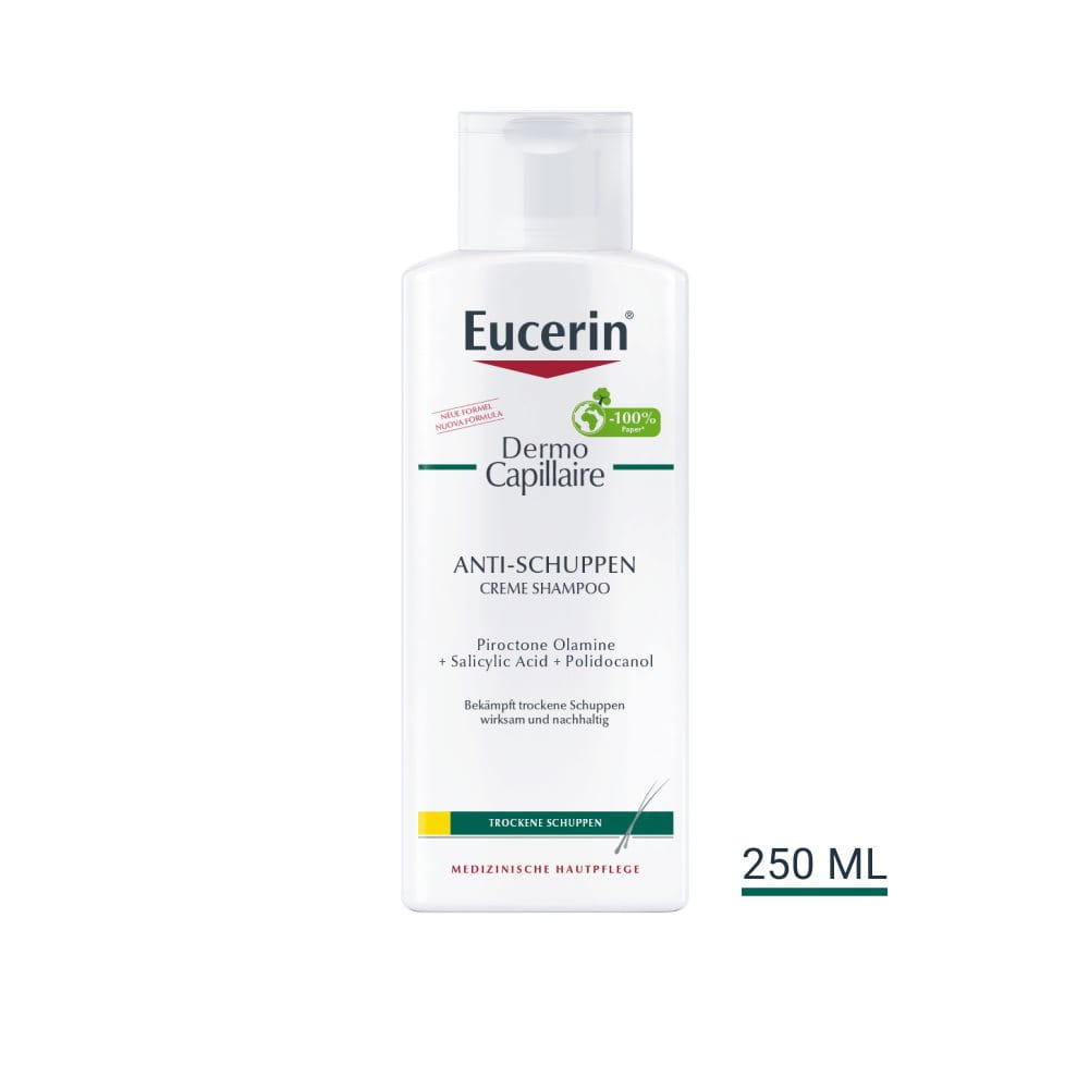 Um den Ansprüchen juckender Kopfhaut mit trockenen Schuppen gerecht zu werden, hat Eucerin das DermoCapillaire Anti-Schuppen Creme Shampoo entwickelt. Es befreit die Kopfhaut und das Haar sanft von trockenen, weißlichen Schuppen und stellt dabei die natürliche Balance der Kopfhaut wieder her. Die milde seifenfreie Formel des Anti-Schuppen Shampoos beruhigt die Kopfhaut und mindert Juckreiz bereits von der ersten Anwendung an. Die Kopfhaut wird vor Irritationen und weiterem Austrocknen geschützt. Das Haar fühlt sich geschmeidig an und erhält einen gesunden Glanz.