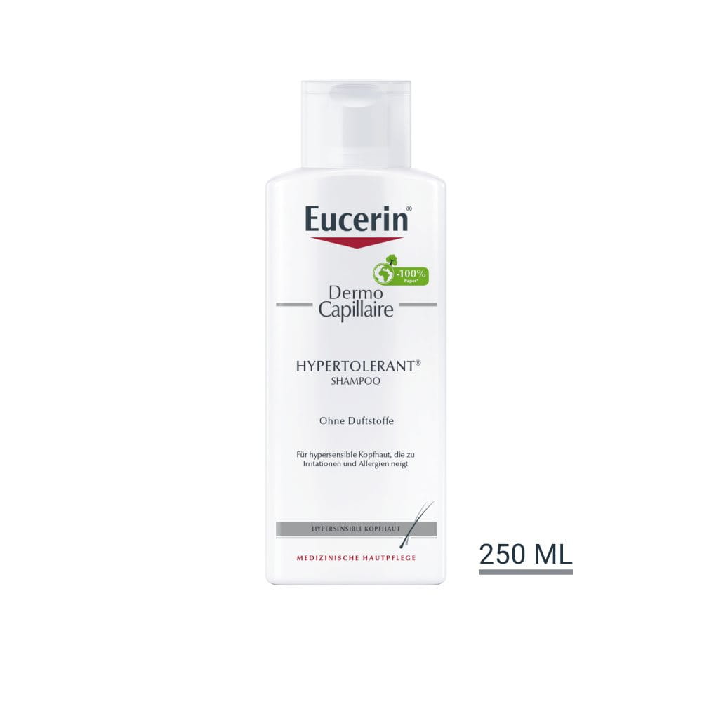 Eucerin DermoCapillaire Hypertolerant Shampoo ohne Duftstoffe verbessert spürbar den Zustand der Kopfhaut und stellt das natürliche Gleichgewicht wieder her. Zudem verleiht das Shampoo dem Haar Glanz und Volumen. Für Kinder und Babys geeignet.