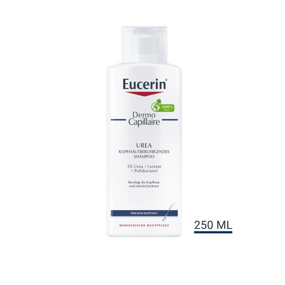 Die Formel dieses Shampoos für trockene Kopfhaut enthält die hauteigenen Feuchtigkeitsfaktoren Urea und Lactat, die den Feuchtigkeitsverlust der Kopfhaut reduzieren, sowie Juckreiz-minderndes Polidocanol zur Beruhigung der gereizten Kopfhaut. Eucerin DermoCapillaire Urea Kopfhautberuhigendes Shampoo verbessert effektiv den Zustand der Kopfhaut. Das natürliche Gleichgewicht wird wiederhergestellt und die Schutzfunktion der Haut gestärkt. Eine besonders milde duftstofffreie Formulierung bewahrt irritierte Kopfhaut vor Reizungen und weiterem Austrocknen. Geeignet für Kinder ab 3 Jahren.