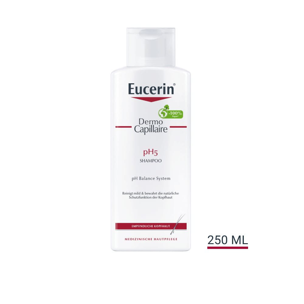Eucerin DermoCapillaire pH5 Shampoo wurde für die Bewahrung des natürlichen pH-Werts Ihrer Haut entwickelt. Das pH neutrale Shampoo reinigt besonders mild, lindert bestehende Trockenheit der Kopfhaut und schützt vor weiteren Irritationen. Es entfernt nicht nur Schmutz, sondern auch Pollen und andere Allergene und verleiht dem Haar gleichzeitig gesunden Glanz und ein geschmeidiges Gefühl.