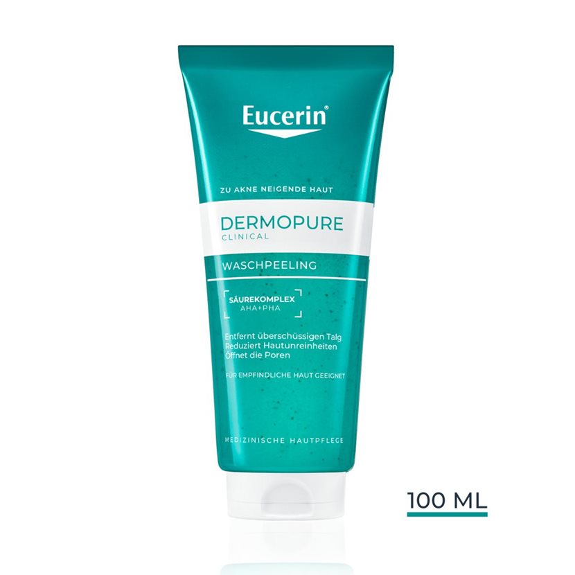 Die nicht fettende Formel des Eucerin DERMOPURE Waschpeelings mit Milchsäure wirkt genau dort, wo Unreinheiten entstehen, ohne die Haut auszutrocknen. Das Peeling befreit die Haut sanft von Make-up und Hautschüppchen. Zusätzlich entfernen Mikropartikel auf natürlicher Basis abgestorbene Hautzellen, ohne die Haut zu beschädigen.