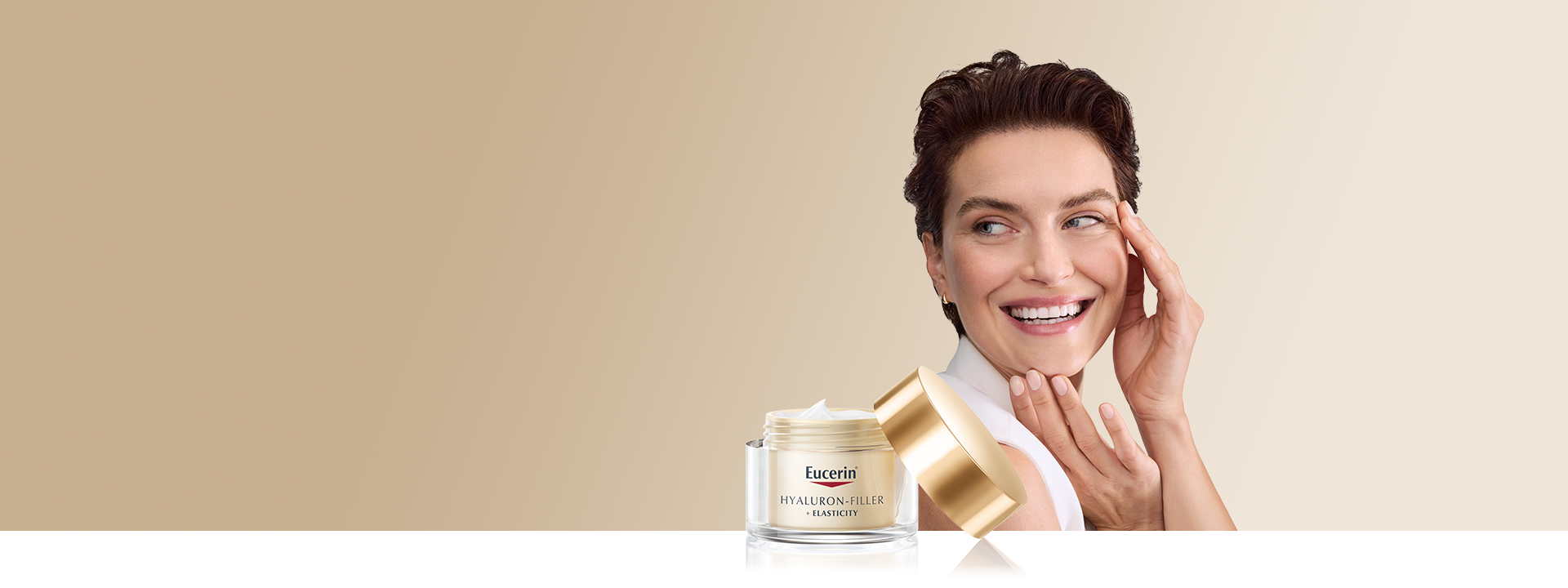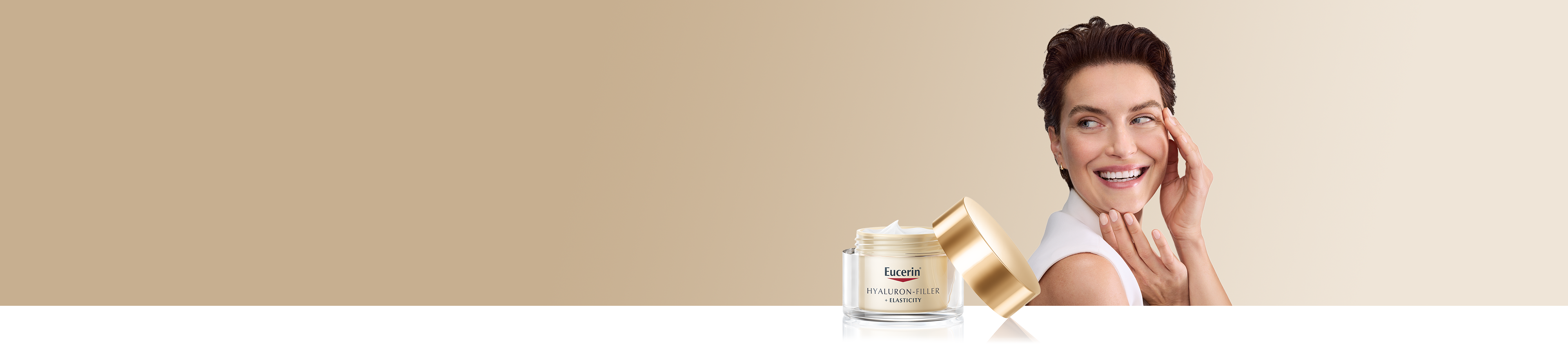 Deshalb umfasst die innovative Eucerin Hyaluron-Filler-Familie ausgewählte Anti-Aging Produkte, die speziell auf diese Beschwerden ausgerichtet sind. Durch die neue Formel mit Thiamidol® werden Altersflecken effektiv korrigiert und in ihrer Neubildung gehemmt, wodurch das Hautbild sichtbar gleichmäßiger und ebenmäßiger erscheint. Zusätzlich regt der neue und innovative Kollagen-Elastin-Komplex der Eucerin Hyaluron-Filler + Elasticity-Serie die hauteigene Kollagenproduktion an und verleiht der Haut spürbare Elastizität. Darüber hinaus und polstert die Hyaluronsäure selbst tiefe Falten auf und spendet intensive Feuchtigkeit.