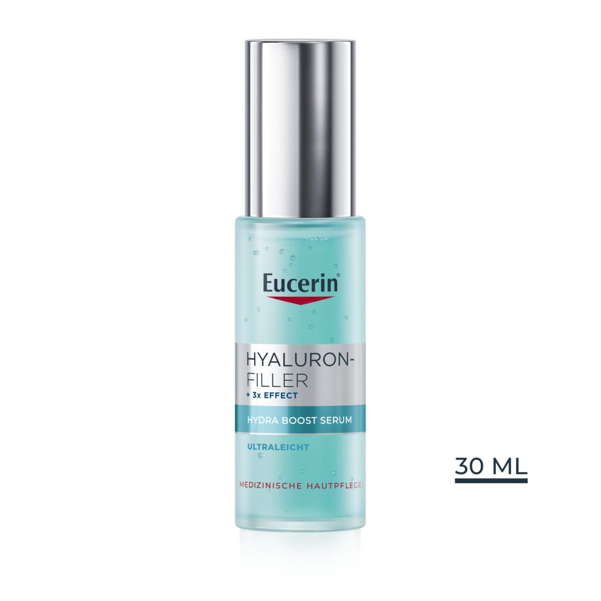 Eine gute Feuchtigkeitsversorgung der Haut ist entscheidend für eine gesund aussehende Haut. Das Eucerin Hyaluron-Filler 3x Effekt Hydra Boost Serum mit hochkonzentrierter Hyaluronsäure und Glycerin mildert erste Falten und polstert die Haut auf. Die ultraleichte und erfrischende Textur spendet der Haut sofortige und intensive Feuchtigkeit, die 24 Stunden anhält. Die Formel zieht schnell ein und erfrischt die Haut.