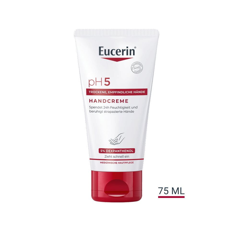 Das einzigartige Eucerin pH Balance System mit dem pH5 Citratpuffer stellt den natürlichen pH-Wert der Haut wieder her. Gleichzeitig hilft 5% Dexpanthenol (Provitamin B5) die Regeneration der Haut zu stimulieren und deren Widerstandskraft zu bewahren. Die Eucerin pH5 Handcreme hilft, den Feuchtigkeitsverlust von häufigem Händewaschen und Handdesinfektion zu reduzieren und die Haut vor Reizungen zu schützen.