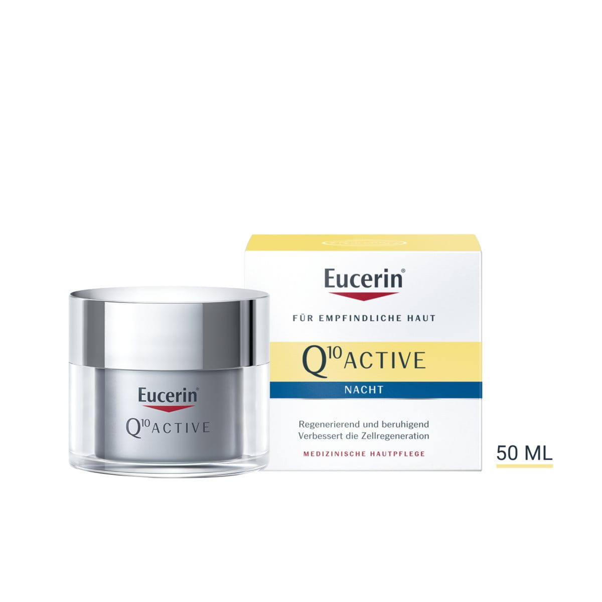 Mit zunehmendem Alter lässt die hauteigene Produktion von Q10 (Ubichinon) nach. Der Energiestoffwechsel und der antioxidative Schutz der Haut nehmen ab. Die Haut verliert an Elastizität und Straffheit und sieht müde aus. Eucerin Q10 Active Nachtpflege ist eine pflegende Anti-Falten Pflege, speziell entwickelt für empfindliche, alternde Haut.