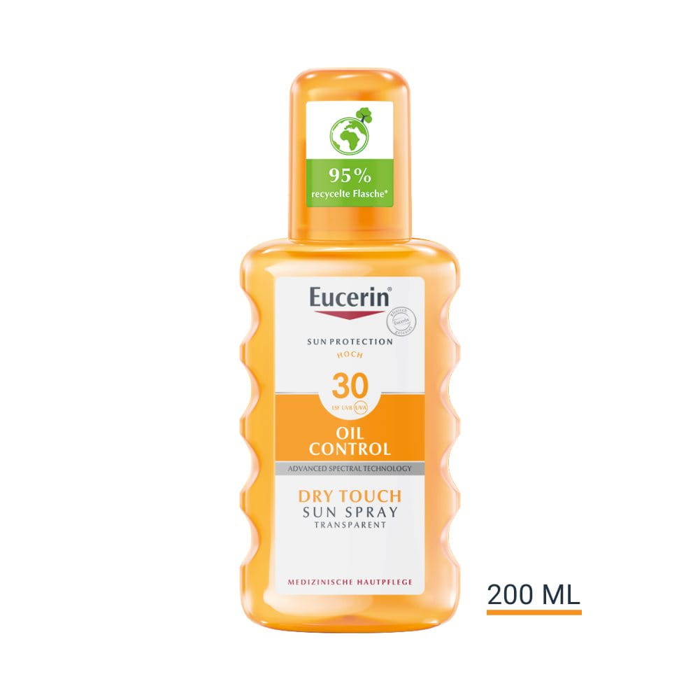 Eucerin Oil Control Body Sun Spray Transparent LSF 30 ist ein Sonnenschutz, der empfindliche und auch zu Akne neigende Haut pflegt und schützt. Das nicht fettende Sonnenspray ist transparent, wasserfest und zieht schnell ein.