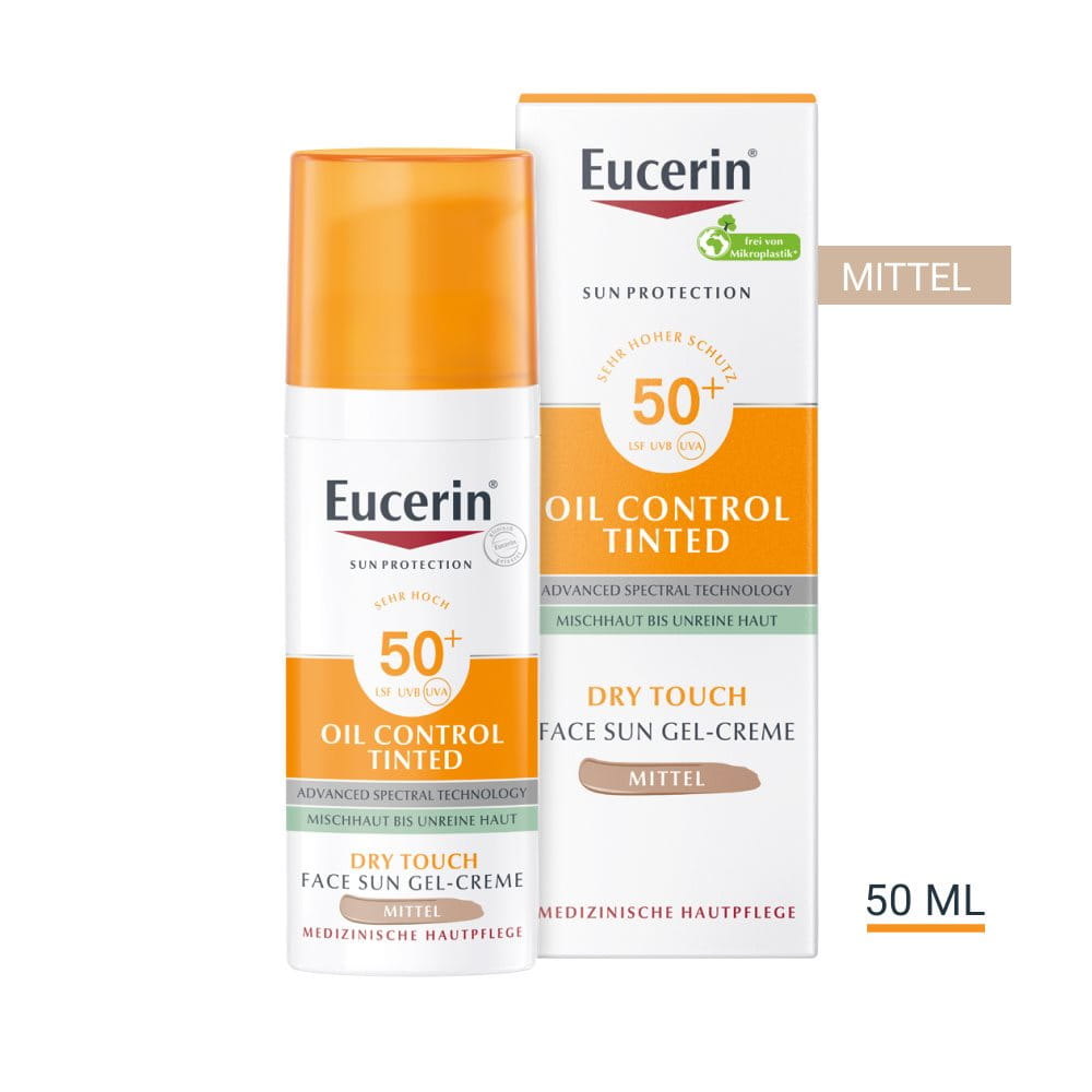 Die Eucerin Oil Control Tinted Face Sun Gel-Creme LSF 50+ Mittel ist auch für empfindliche Haut geeignet und darf daher auch in der Augenpartie aufgetragen werden. Direkter Augenkontakt sollte jedoch vermieden werden.